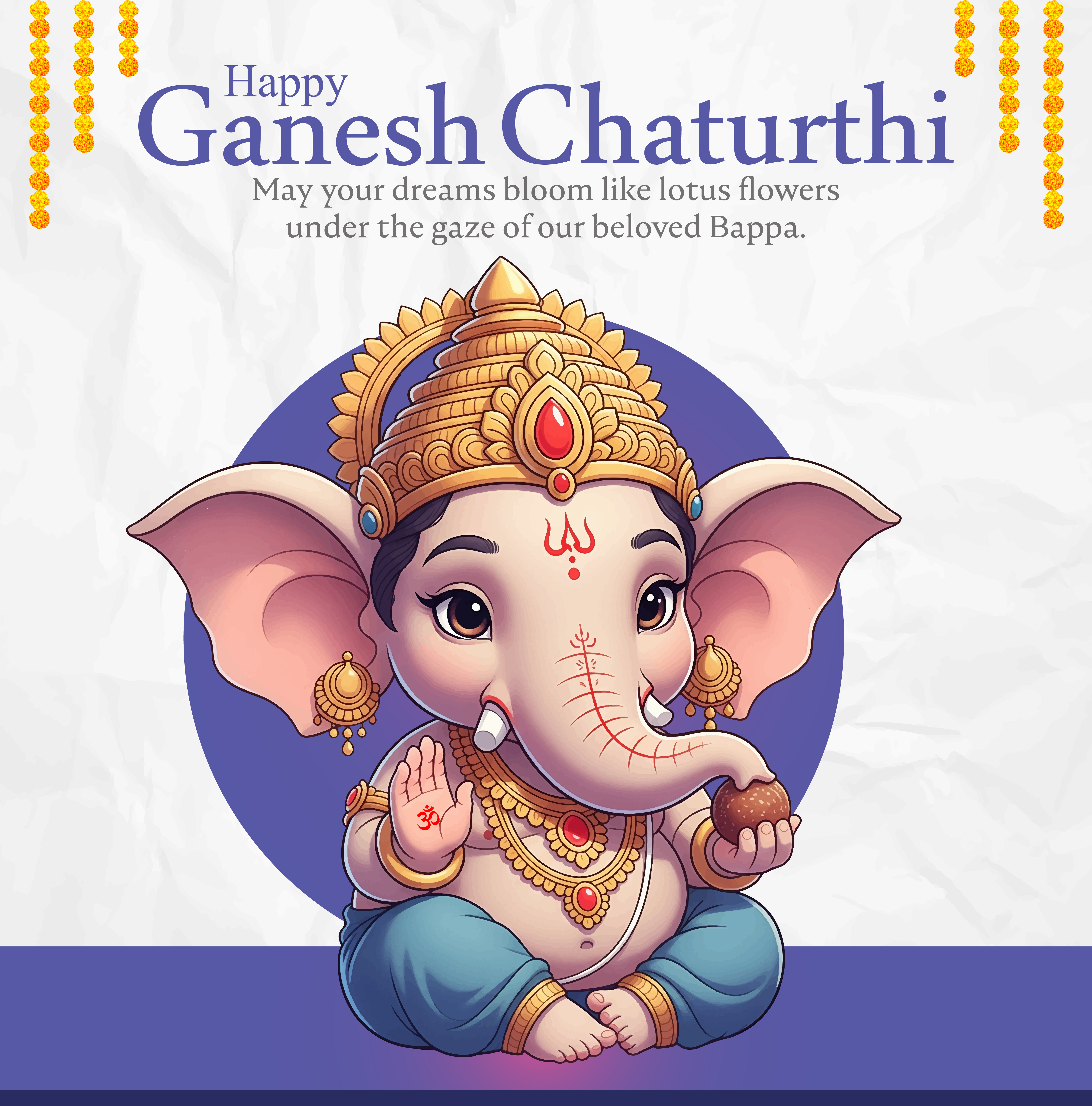 May Lord Ganesha bless your life with wisdom, prosperity, and success, and guide you through every new beginning with positivity and strength.