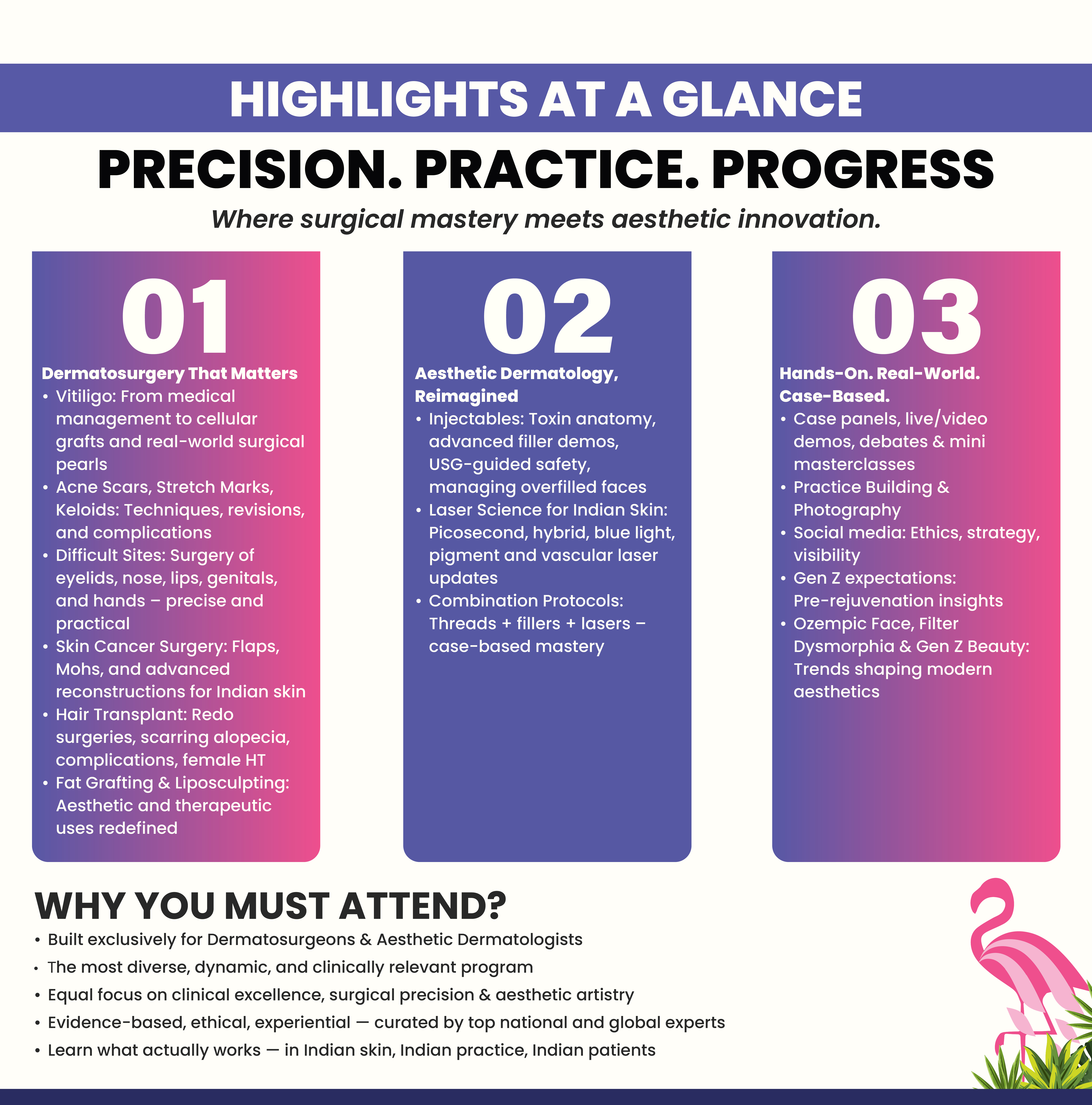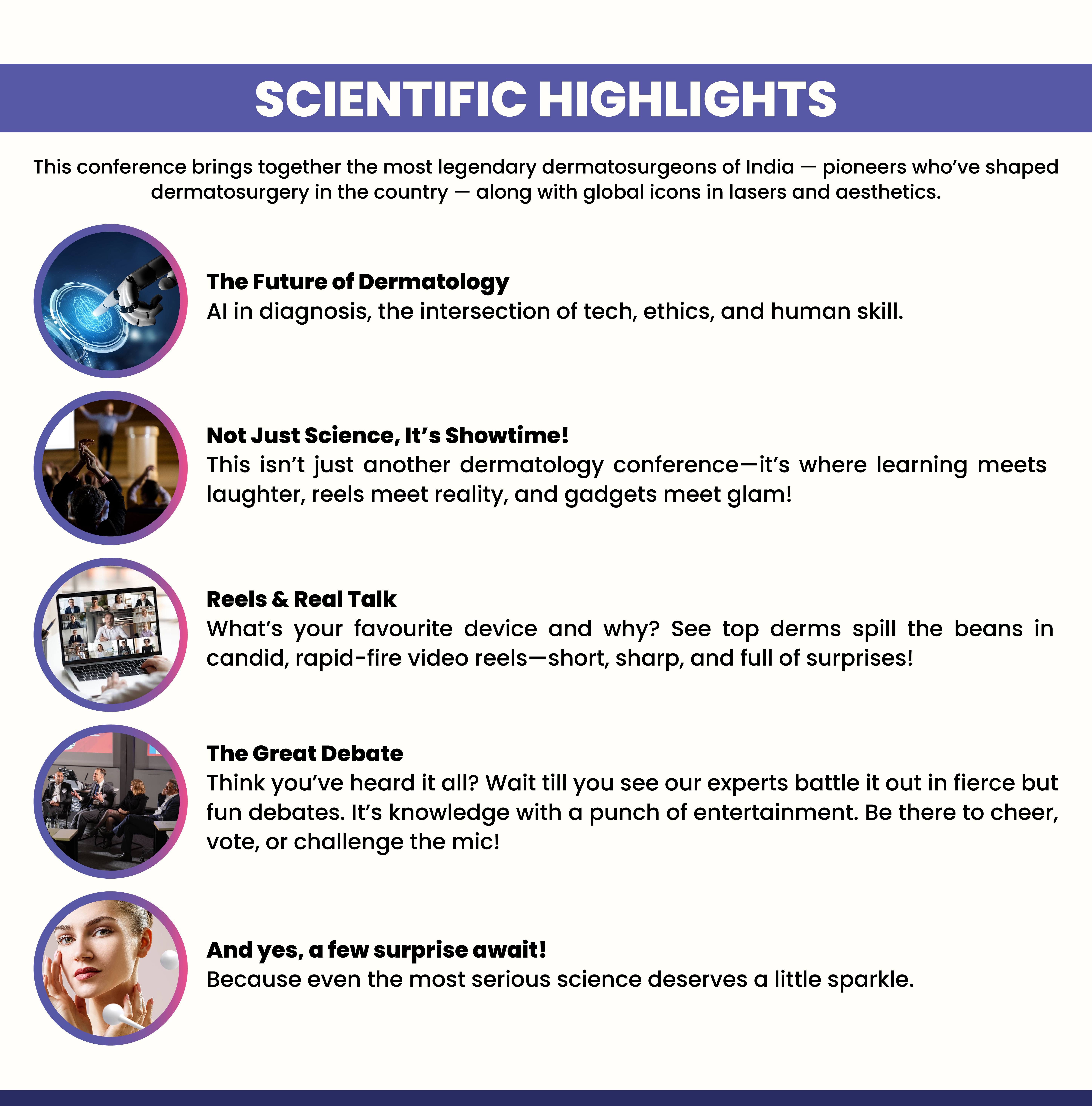 ACSICON 2025 stands as the premier conference for Procedural Dermatology in India, proudly hosted by the Association of Cutaneous Surgeons of India (ACSI). This conference is dedicated to Dermatologists specializing in Dermatosurgery and Aesthetics, and it serves as an essential platform for both seasoned practitioners and aspiring professionals nationwide.